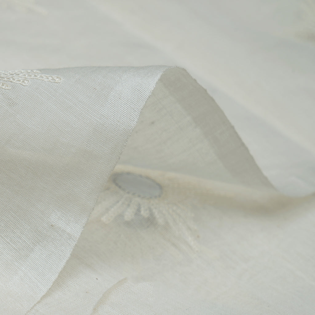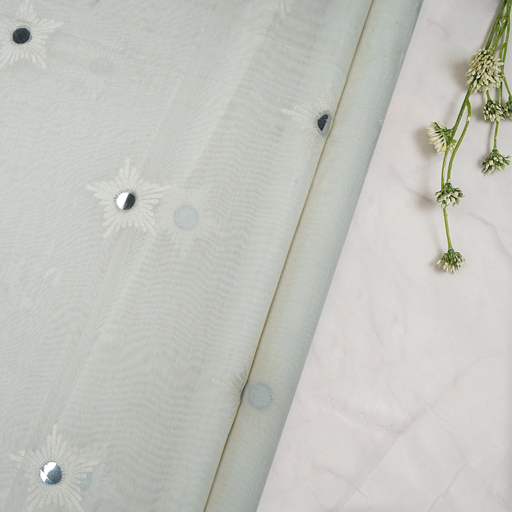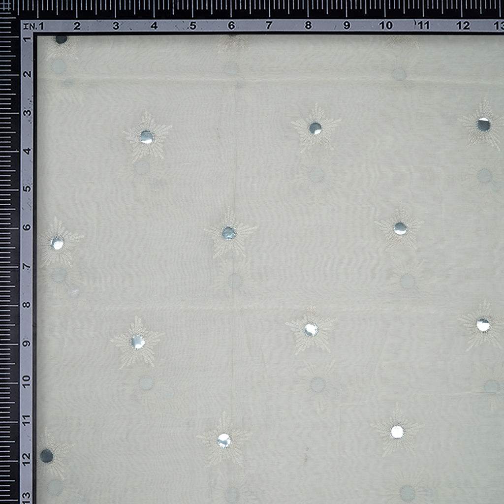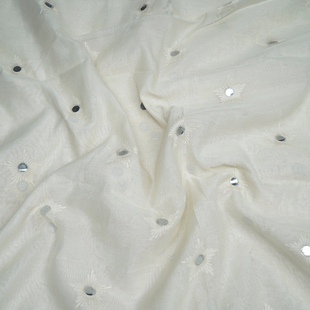 (Pre-Cut 4.00Mtr)Off White Color Mirror Work Embroidered Chanderi Fabric