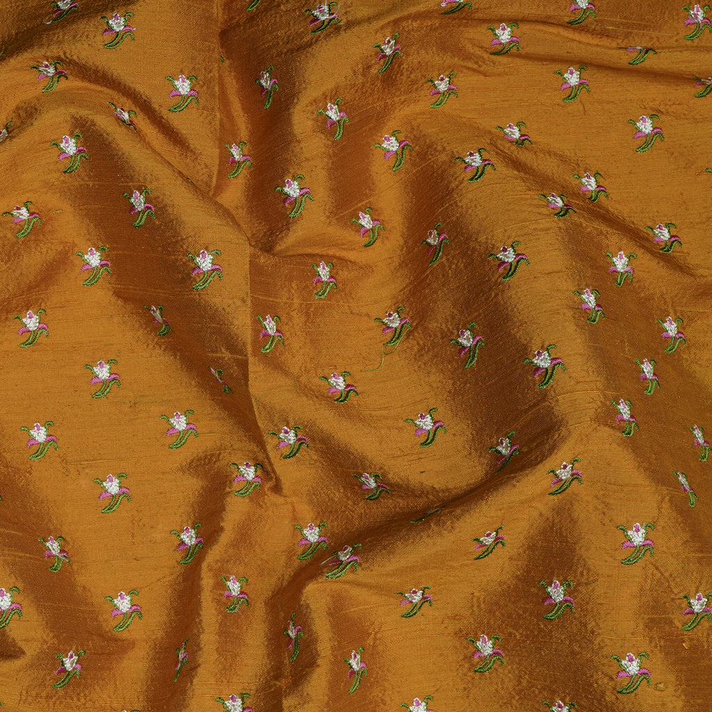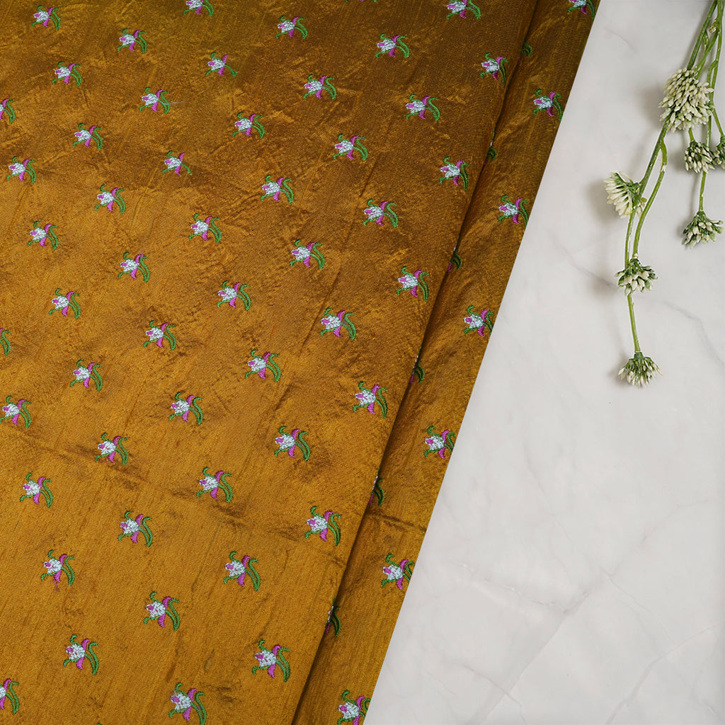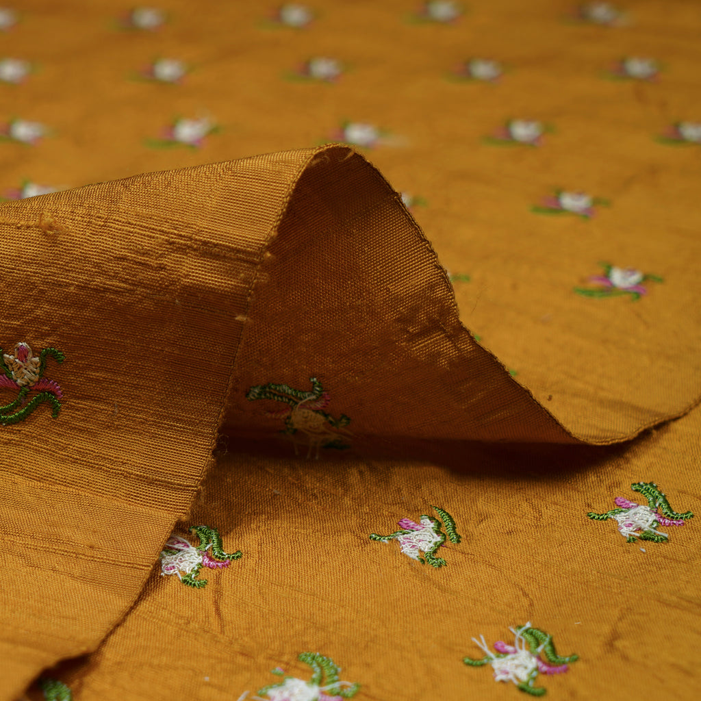 (Pre-Cut 4.10 Mtr)Mustard Color Embroidered Silk Fabric